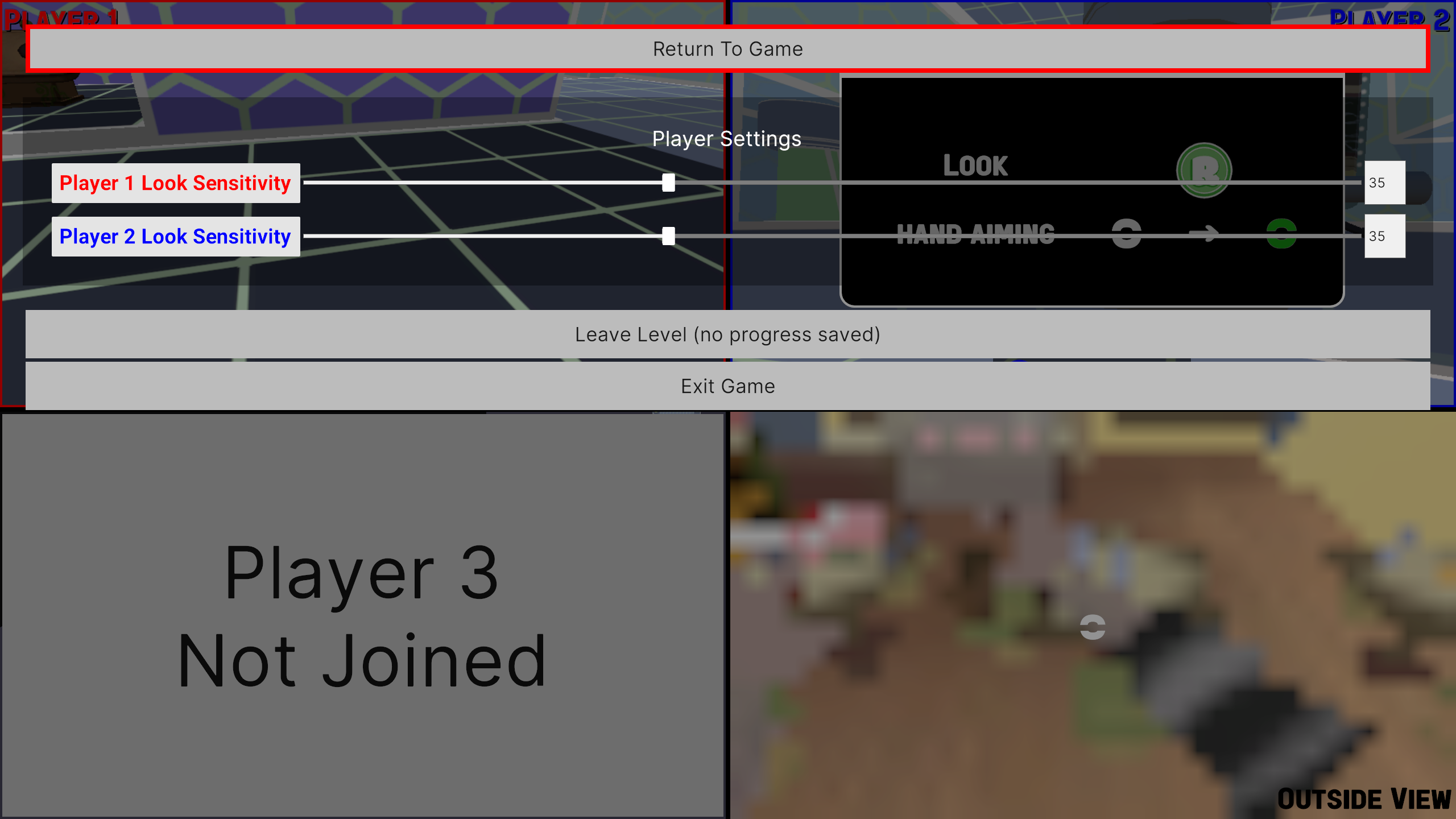 Player Sensitivity - We've tuned some of the player control sensitivities and added a pause menu that allows players to modify their sensitivities in game as well as return to the level select or quit the game.